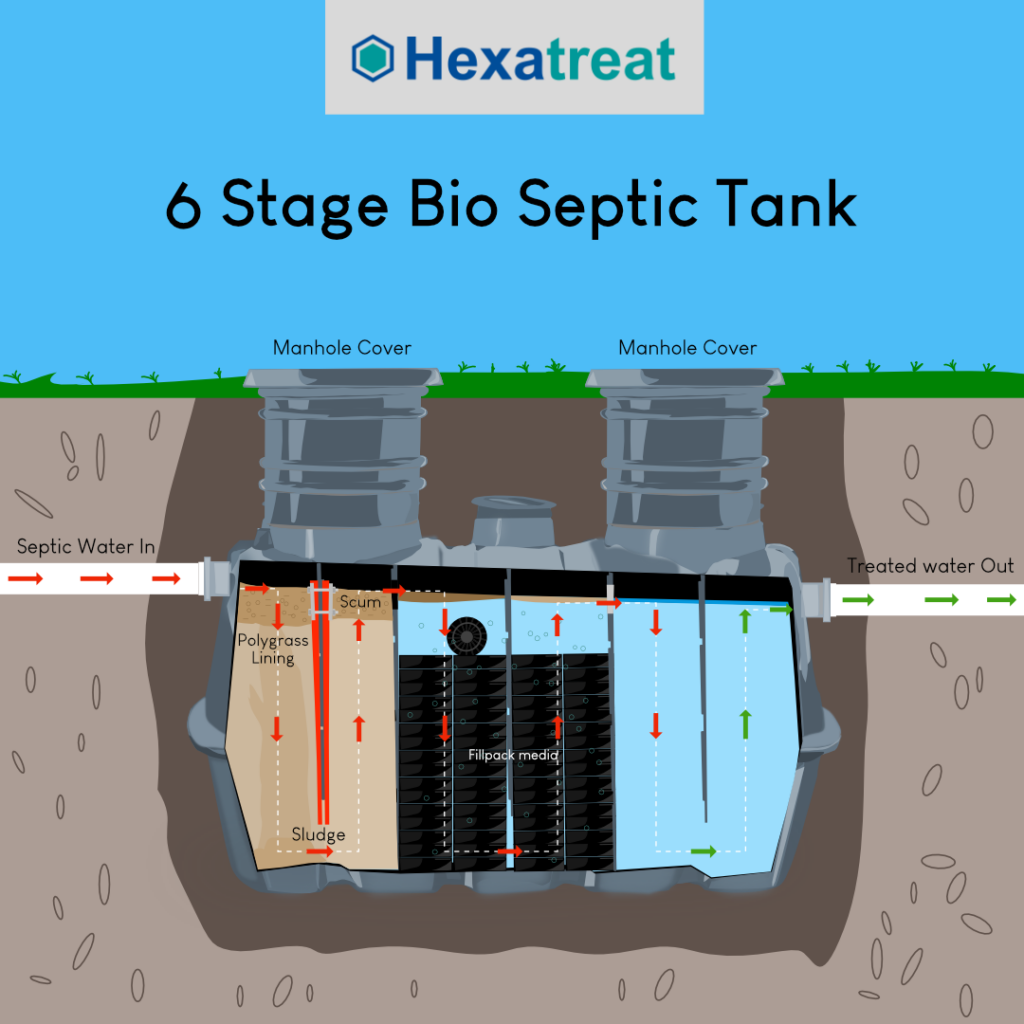 Hexatreat’s Bio Septic Tank is engineered to treat septic water to the highest level of standards and offers one of the lowest lifetime costs compared to other treatment processes.